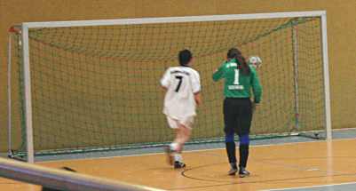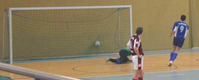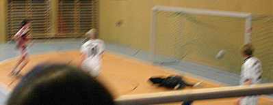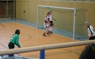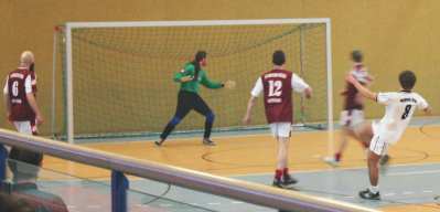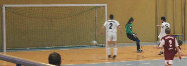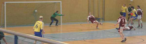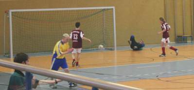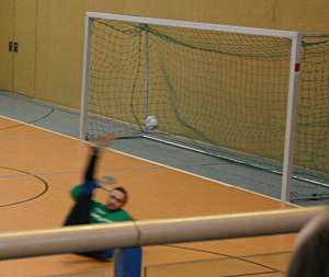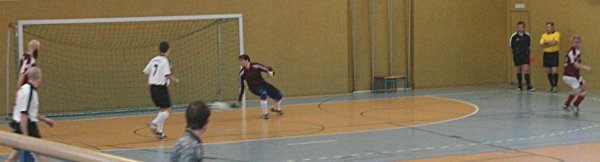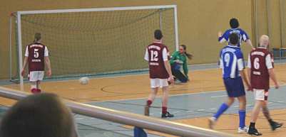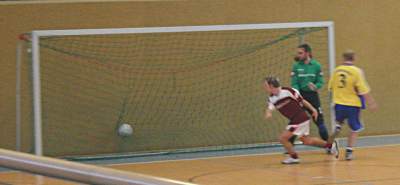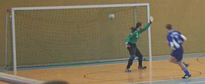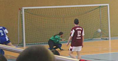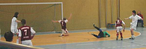 Diesen Ball hatte Zabel eigentlich schon gehabt, aber die Teflon-Beschichtung seiner Handschuhe ließ das Leder durchrutschen. So stand es in der 7.Minute 3:0.