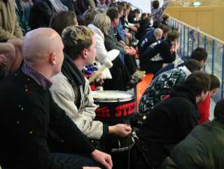 Die Fans vom Roten Stern beeindruckte das wenig. Die Stimmung war trotz der sich anbahnenden dritten Niederlage gut, u.a. weil schon die Teilnahme an der Endrunde eine große Überraschung war. Während dieser Aufnahme fiel das 2:0 in der dritten Minute.