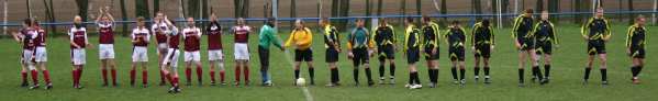 Danach verlief die erste Halbzeit ziemlich ausgeglichen und eintrudelnde Spieler und Zuschauer des Spiels der zweiten Mannschaft brachten frohe Kunde. Die Zweite hatte bei Monstab/Lödla II 3:2 gewonnen und somit ihren ersten Sieg erkäpft. Auf dem Bild ist ein Teil der Fans zu sehen. Trotz des Rückstandes und des kühlen, trüben Wetters war die Stimmung zu diesem Zeitpunkt nicht schlecht.