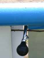 Interessante Features bietet das Geländer am Zechauer Spielfeldrand. Über diesen Anschluss für C-Schläuche kann das Rohr mit Flüssigkeiten befüllt werden.