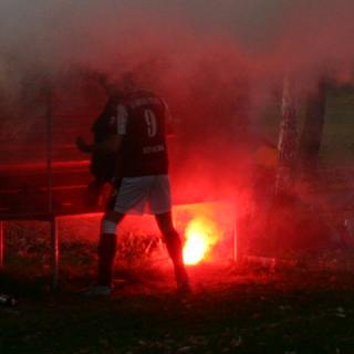Während der gesamten Halbzeit war ein Polizeihubschrauber zu sehen, der das Gelände absuchte. In der 77. Minute nahm er sich den Fußballplatz vor. Der Ball rollte ins Aus. Beide Mannschaften nutzten die Unterbrechung zum Auswechseln. Weil man sich nicht sicher war, ob der Hubschrauber auf dem Spielfeld landen will, spielte man nicht gleich weiter.
