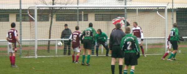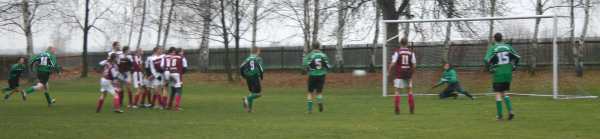 Nach einer Ecke in der letzten Minute vor der Pause trafen die Gastgeber doch noch. Der Unparteiische ließ dann noch ca. eine Sekunde spielen, bevor es in die Kabinen ging.