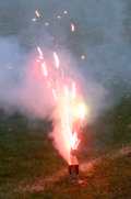 Als die ersten Mannschaften aufeinandertrafen, hatte sich das Wetter nicht gebessert. Doch der Spielverlauf war hier angenehmer. Roter Stern ging in der sechsten Minute zeitig in Führung. Die beiden Bilder zeigen im Abstand von Sekundenbruchteilen den Weg, den das Leder ins Tor nahm, nachdem Arnie geschossen hatte.