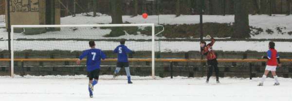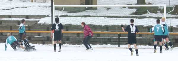 Unter diesen Bedingungen kam die Zweite bsonders gut zurecht. Im letzten Drittel der ersten Halbzeit erzielte Kese mit einen schönen Heber das 3:0. Zuvor hatten Moppel und Döhler getroffen.