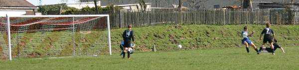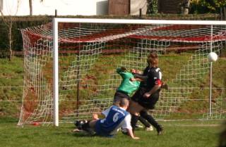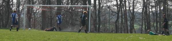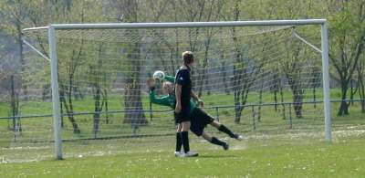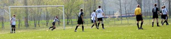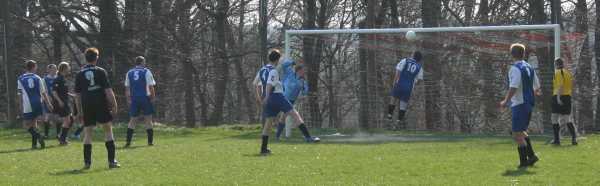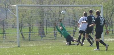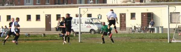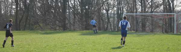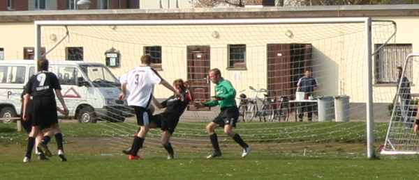 Die Erste hatte am Karfreitag das am 18.3. ausgefallene Spiel in Lucka nachzuholen. Bis zur Pause verlief die Partie sehr gemütlich. Die Gastgeber hatten dabei mehr Einschussmöglichkeiten. Sie verfehlten jedoch das Tor oder scheiterten am sehr guten Dennis, wie hier in der 7. Minute...