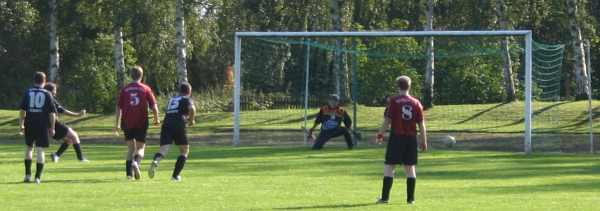 Das Spiel der Ersten gegen Starkenberg II blieb bis Mitte der ersten Halbzeit torlos. Dann begann ein kleines Schützenfest. In der 26. Minute hämmerte Joschi bei einem Freistoß das Leder direkt ins Tor.
