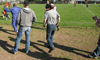 Kurz darauf pfiff der Schiedsrichter das Spiel ab. Die Spannung fiel von den Fans ab und einige rannten begeistert zum Spielfeldrand.